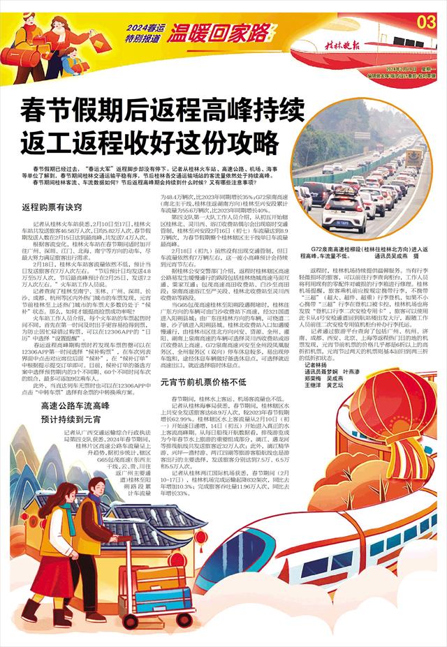春节期间桂林客流、车流数据如何?节后返程高峰期会持续到什么时候?又有哪些注意事项?