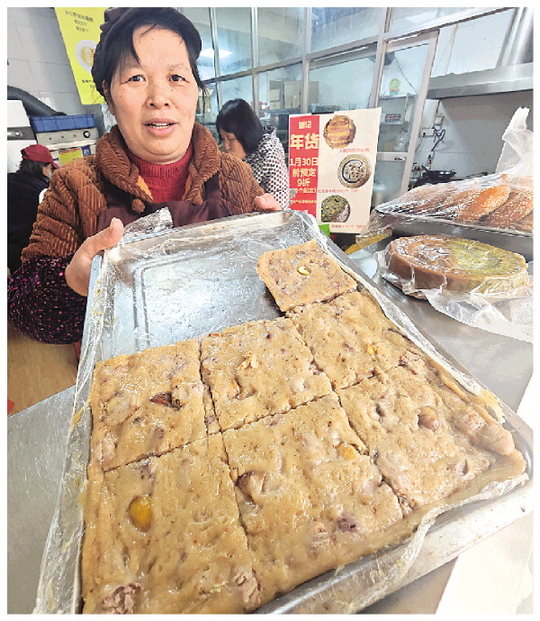 钟干秀展示她制作的板栗芋头糕。