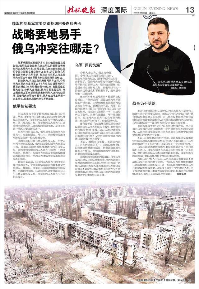 还有分析说,乌方选择在慕尼黑安全会议期间宣布从阿夫杰耶夫卡撤军,想借机向西方施压“解锁”军援。乌克兰总统泽连斯基17日在该会议上发表讲话说,对乌克兰提供的武器出现“赤字”,特别是弹药和远程武器,美国军援“至关重要”。
