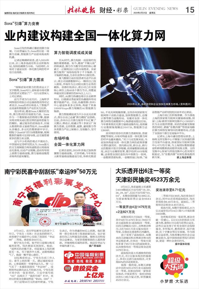 Sora“引爆”算力竞赛 业内建议构建全国一体化算力网   Sora引发的热潮正蔓延到算力领域。行业普遍认为,Sora背后是一场算力竞赛,智能算力产业迎来挑战和机遇。