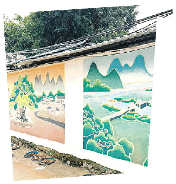 柘木村的墙画,内容是当地的风景。 记者谭熙 摄
