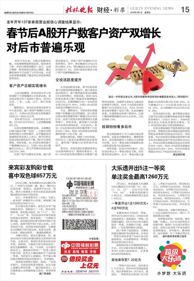 龙年开年137家券商营业部信心调查结果显示: 春节后A股开户数客户资产双增长