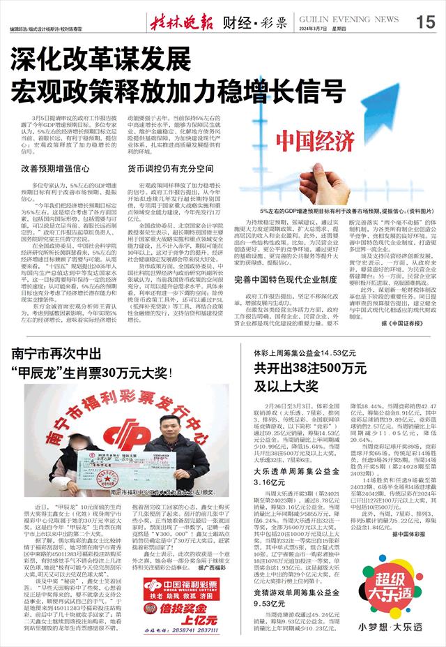 体彩上周筹集公益金14.53亿元 共开出38注500万元