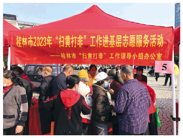 记者了解到,过去一年,桂林各县(市、区)及相关部门积极整合各方资源,将“扫黄打非”进基层融入志愿服务、法制宣传、公共文化服务等活动中。在荔浦,“扫黄打非”部门将这一工作融入农村公益电影平台,借助农村公益电影放映期间插播“扫黄打非”和版权保护宣传片,内容覆盖成年、青少年、儿童等各个年龄层;在叠彩区,“扫黄打非”基层站与新时代文明实践中心(所、站)、农家书屋、“护苗”工作站等融合,“扫黄打非”的元素被融入志愿服务、文艺演出、全民阅读活动中……