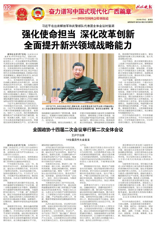 全面提升新兴领域战略能力 ●2024全国两会特别报道详见 2-6 版