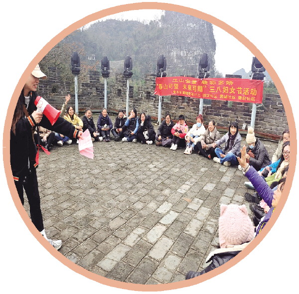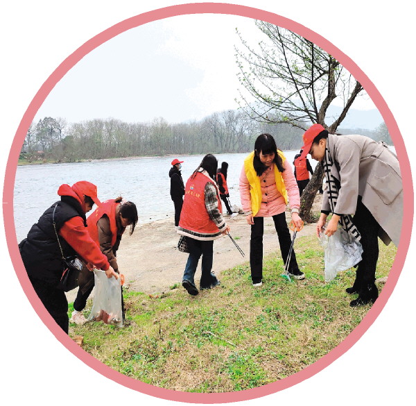 春江社区的女性职工一起为漓江“洗脸”。 (社区供图)
