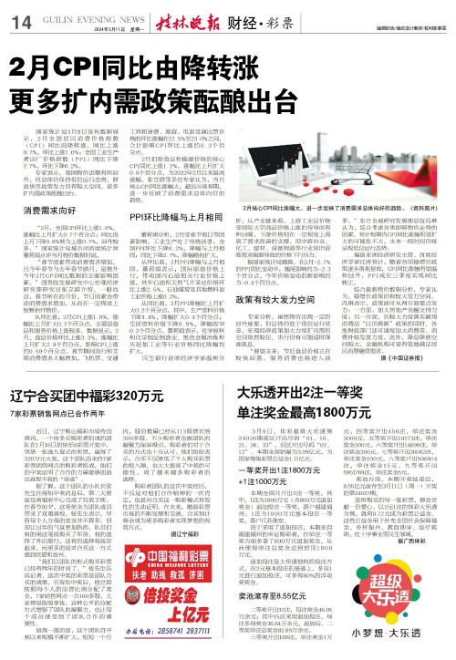 更多扩内需政策酝酿出台   国家统计局3月9日发布数据显示,2月全国居民消费价格指数(CPI)同比由降转涨,同比上涨0.7%,环比上涨1.0%;全国工业生产者出厂价格指数(PPI)同比下降2.7%,环比下降0.2%。