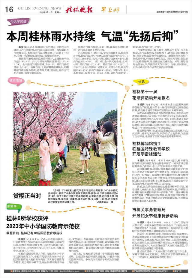 2023年中小学国防教育示范校 截至目前 桂林已有18所国防教育示范校   本报讯(记者唐霁云)记者从市教育局获悉,日前教育部公布2023年中小学国防教育示范学校名单,桂林共有6所学校上榜,分别为市榕湖小学、市中华小学、市将军桥小学、市民主小学、市桂林中学、市第十八中学。
