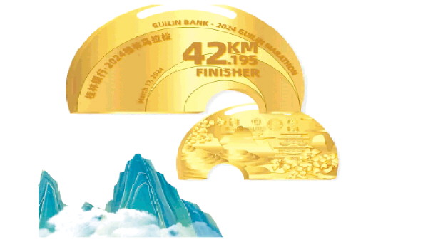 近日,桂马组委会公布了今年的完赛奖牌、参赛服。奖牌设计从桂林人文、风俗提炼灵感,以象鼻山作为主轮廓,有漓江的川流不息、梯田的风貌奇景,靖江王府的文化底蕴。用桂花点缀,通过一山环抱,共同篆刻于奖牌之上,以形释意,彰显兼具古代与现代的桂林,呈现出深厚底蕴和蓬勃朝气。奖牌背面,直观地展现象鼻山轮廓、蜿蜒跑道,搭配了2024桂林马拉松中英文字样,以及代表全马42.195公里、半马21.0975公里、迷你跑5公里的完赛字样,让所有完赛选手都能拥有独特的奖牌留念。