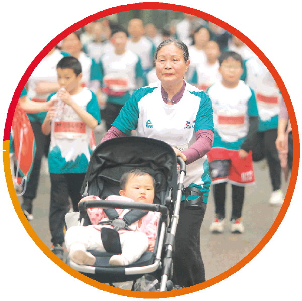 今年的迷你马拉松现场,记者看到,一半以上家长选手都带着孩子,甚至还有婴幼儿坐在推车里,一家人感受跑步的魅力。