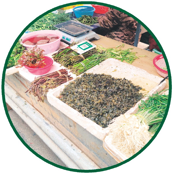 而桂林的野菜其实一年四季都有,只是春季至初夏时节尤为多一些。荠菜、车前草、蒲公英、苣荬菜、雷公菌、香椿、野藠头、春笋、野茼蒿等都是这个季节比较多的春菜,到了“三月三”、清明左右,清明菜、白花菜、艾草等就会大量上市。