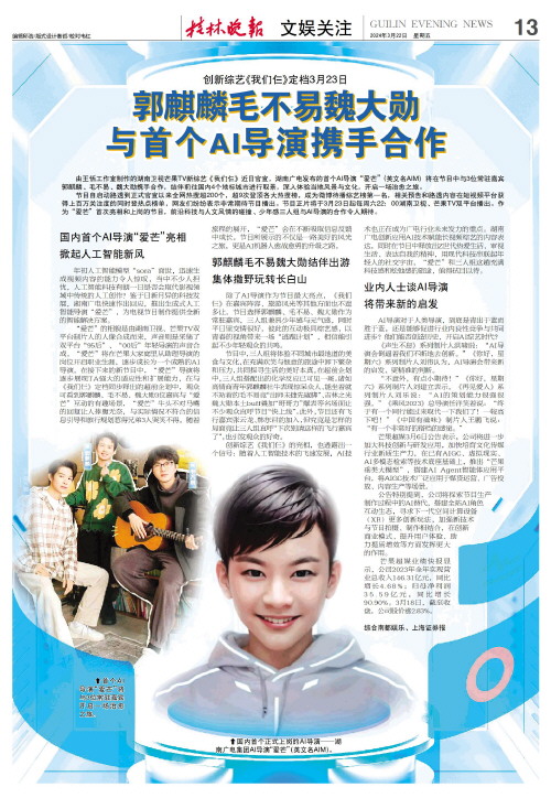 《声生不息》系列制片人洪啸说:“AI导演会倒逼着我们不断地去创新。”《你好,星期六》系列制片人刘伟认为,AI导演会带来新的启发、更精准的判断。