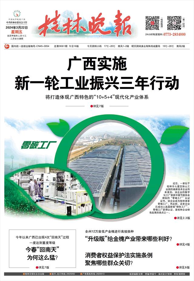 生态环境高水平保护经济高质量发展“双促双赢”,是桂林绿色发展的大方向。今年桂林市政府工作报告指出:要持续推进绿色低碳发展。推动制造业绿色低碳转型,加快绿色工厂、绿色园区、绿色供应链建设……要把生态为民理念融入城市血脉,向阳而生、向绿而行,让大美桂林更加可触可感可享。