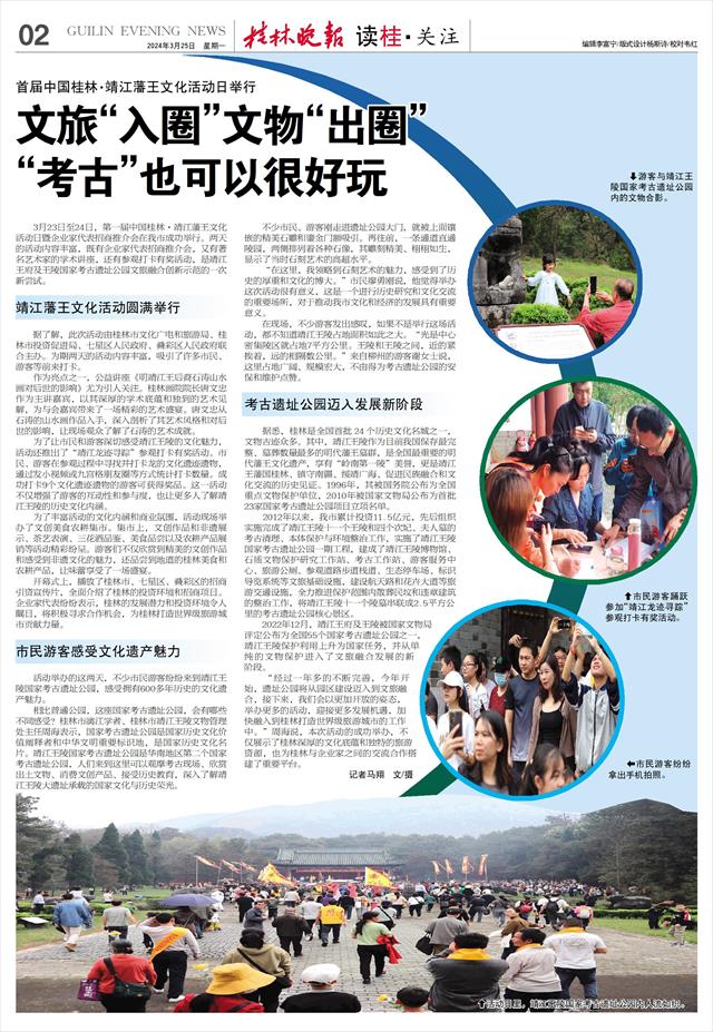 “经过一年多的不断完善,今年开始,遗址公园将从园区建设迈入到文旅融合,接下来,我们会以更加开放的姿态,举办更多的活动,迎接更多发展机遇,加快融入到桂林打造世界级旅游城市的工作中。”周海说,本次活动的成功举办,不仅展示了桂林深厚的文化底蕴和独特的旅游资源,也为桂林与企业家之间的交流合作搭建了重要平台。