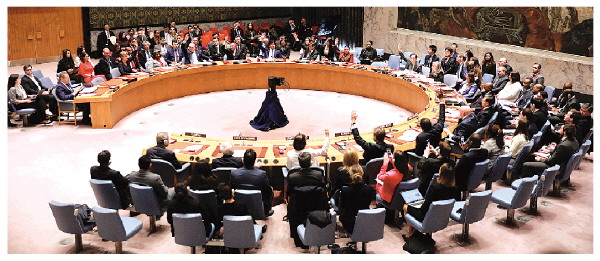 这是3月25日在位于纽约的联合国总部拍摄的安理会投票表决现场。新华社记者谢锷 摄