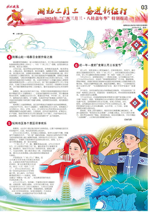 此外,由市文化广电和旅游局主办的“桂林三月三诗歌会”将于4月11日在线上直播。桂林文旅将携手名人名家明星,与非物质文化遗产传承人,以诗意的人文视角,面向世界呈现壮乡文化。