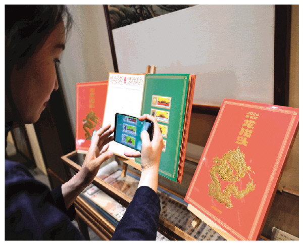 4月7日,记者在发布会上拍摄《龙抬头》邮册。