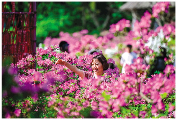 近期,七星景区里杜鹃花盛开。前几天的一个上午,市民趁着好天气来到这里赏花,一张张笑脸掩映在花丛中,如同绽放的鲜花一样绚烂。 记者滕嘉 摄