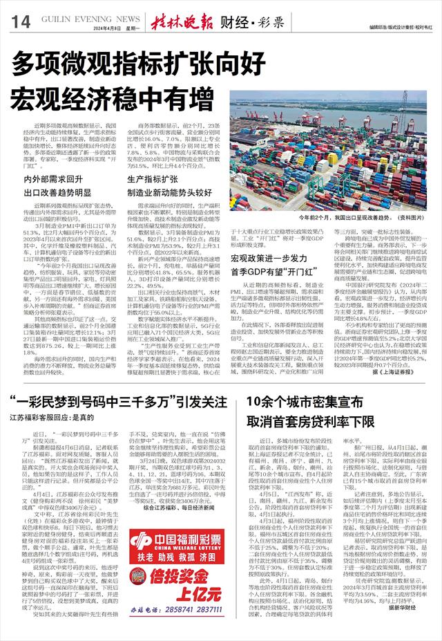 “生产性服务业受到工业生产带动,景气度持续回升。”浙商证券首席经济学家李超表示。在他看来,2024年一季度基本面延续修复态势,供给端修复超预期且显著快于需求端,核心在于十大重点行业工业稳增长政策效果凸显。工业“开门红”将对一季度GDP形成积极支撑。
