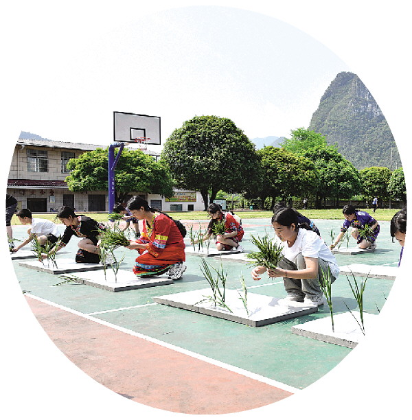 4月7日,灵川县兰田瑶族乡当地师生开展丰富多彩的活动,欢庆“三月三”。活动当天,在兰田瑶族乡民族学校和兰田瑶族乡中心幼儿园内,具有民族特色的“跳蚤市场”、竹竿舞、舂糍粑等趣味活动如火如荼。