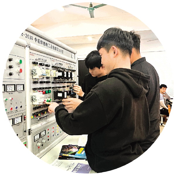 桂林山水职业学院电工电子实训室内,机电一体化技术专业的同学们在进行电工技术实操。