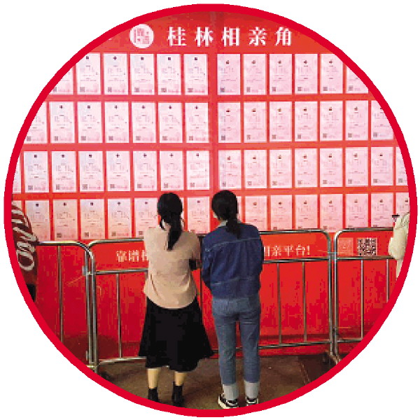近段时间,河南开封万岁山武侠城的《王婆说媒》节目在网上引起热烈反响。受此启发,近段时间,桂林有商家也行动起来,通过搭建线下相亲平台,吸引年轻人参与。而在此之前,不少商圈也出现了“相亲角”。