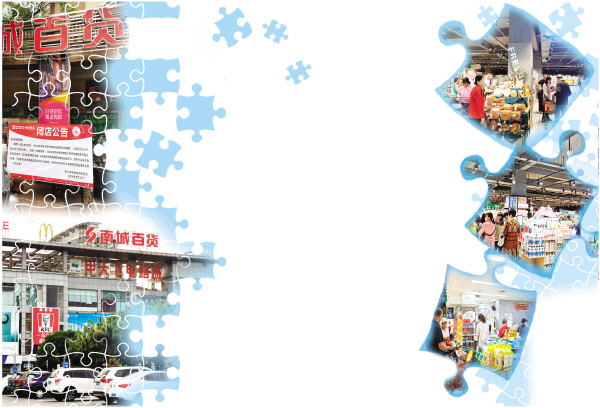 在位于安厦世纪城门口的南城百货超市安厦店,记者也看到了“闭店公告”,但超市里比较冷清,前来购买的人寥寥无几。超市不少货架都贴了黄色特价标签,折扣力度也很大。超市工作人员夏女士介绍:“听说要关店了,不少市民表示很惋惜,但现在社区购物都很方便,满大街都是生鲜超市。即使有折扣,来我们这里逛的人也很少。”