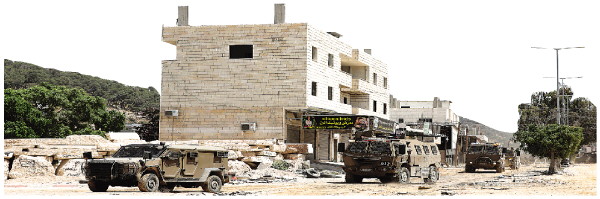 这是4月20日在约旦河西岸城市图勒凯尔姆拍摄的以色列军车。