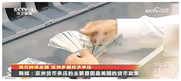 受强势美元影响,近期亚洲多国货币迅速贬值。(央视新闻截图)