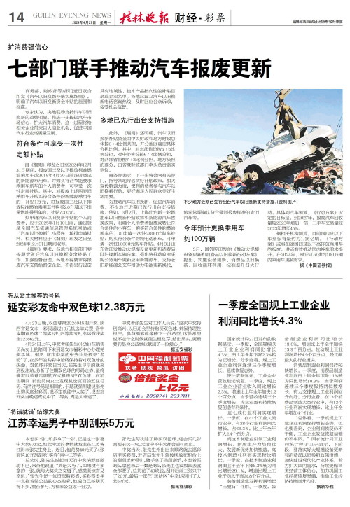 “总体看,一季度规上工业企业利润保持增长态势,但也要看到,企业利润恢复仍不平衡,工业企业效益恢复基础仍不牢固。”国家统计局工业司统计师于卫宁表示,下阶段,要落实好大规模设备更新和消费品以旧换新政策措施,加快建设现代化产业体系,着力扩大国内需求,持续提振各类经营主体信心,加力巩固工业经济恢复基础,推动工业经济持续回升向好。