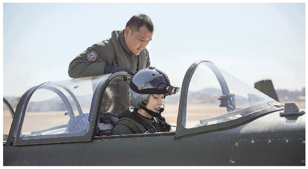 海军航空大学飞行教官带教海军首批舰载机女飞行学员(3月6日摄)。 新华社发
