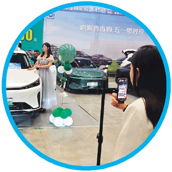 ↑参展商在现场架设直播间,邀请市民“云逛展”。