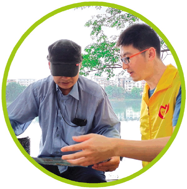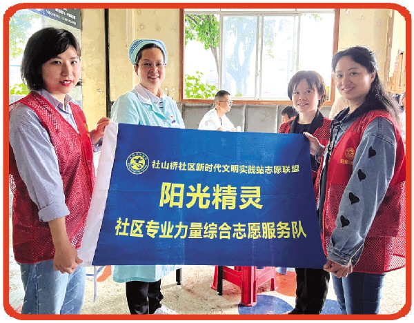←郑嘉薇(左一)是社区专业力量综合志愿服务队的一员。