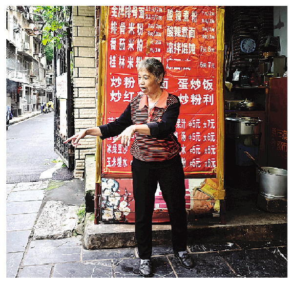 甘桂枝是依仁路附近阿甘桂林老字号天忠馄饨店的老板娘。事发之前几分钟,一名男子和他的妻子、丈母娘以及两个女儿走进店里,手里提着蛋糕,点了馄饨、炒粉和米豆腐。男子穿着深红色上衣,看上去40多岁,和家人一起坐在甘桂枝不远处就餐。