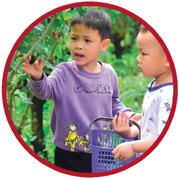 临桂两江的桑果园里,两名小朋友在采摘桑葚。 通讯员陈秋霞 摄