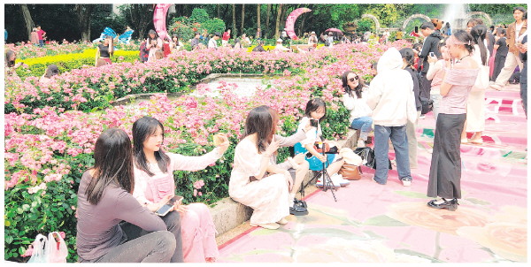 近日,虞山公园内数万株月季绚丽绽放,市民、游客纷纷来到公园赏花,与美丽的花海合影留念。记者唐霁云 摄