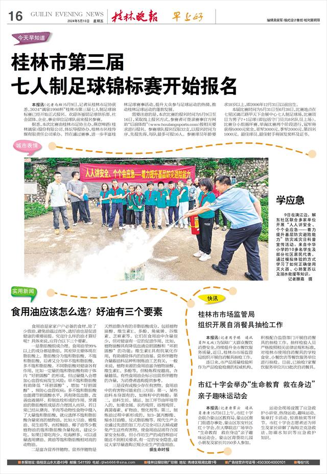 学应急   9日在漓江边,解东社区联合多家单位开展“人人讲安全、个个会应急——着力提升基层防灾避险能力”防灾减灾日科普宣传活动。来自中华小学的10多名学生及部分社区居民代表,通过模拟体验的方式学习了如何正确使用灭火器、心肺复苏以及溺水救援等知识。