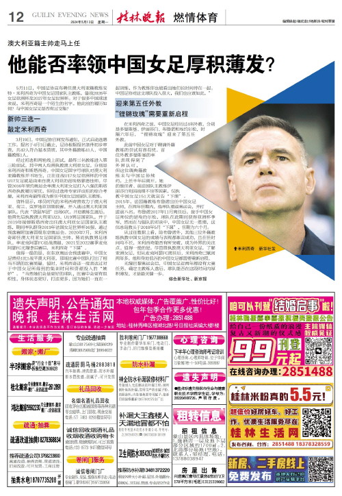 澳大利亚籍主帅走马上任 他能否率领中国女足厚积薄发?   5月11日,中国足协宣布聘任澳大利亚籍教练安特·米利西奇为中国女足国家队主教练,备战2026年女足亚洲杯及2027年女足世界杯。对于很多中国球迷来说,米利西奇是一个陌生的名字。他此前的履历如何?与中国女足又是否有过交集?