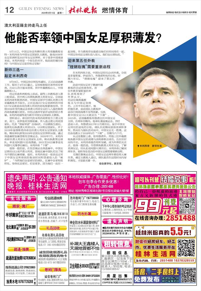 5月11日,中国足协宣布聘任澳大利亚籍教练安特·米利西奇为中国女足国家队主教练,备战2026年女足亚洲杯及2027年女足世界杯。对于很多中国球迷来说,米利西奇是一个陌生的名字。他此前的履历如何?与中国女足又是否有过交集?