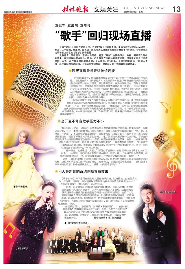 《歌手2024》将以全程直播的形式贯穿整季竞演,以直播放大竞演的真实性、竞技性、戏剧性,同时还要保证节目带给观众的体验性和观赏性——二者能否兼得成为《歌手2024》最大的亮点。