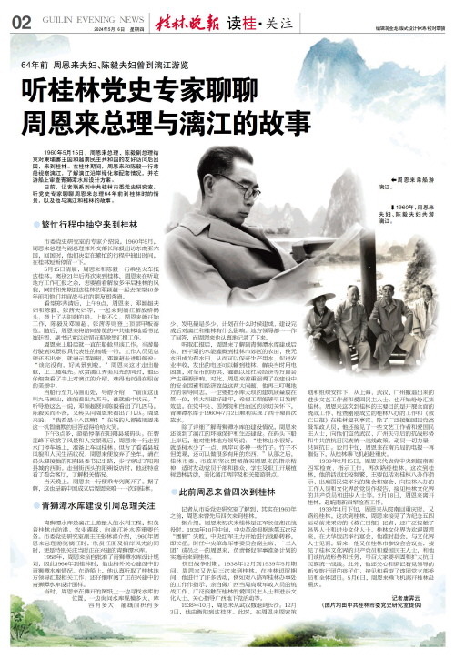日前,记者联系到中共桂林市委党史研究室,听党史专家聊聊周恩来总理64年前到桂林时的情景,以及他与漓江和桂林的故事。