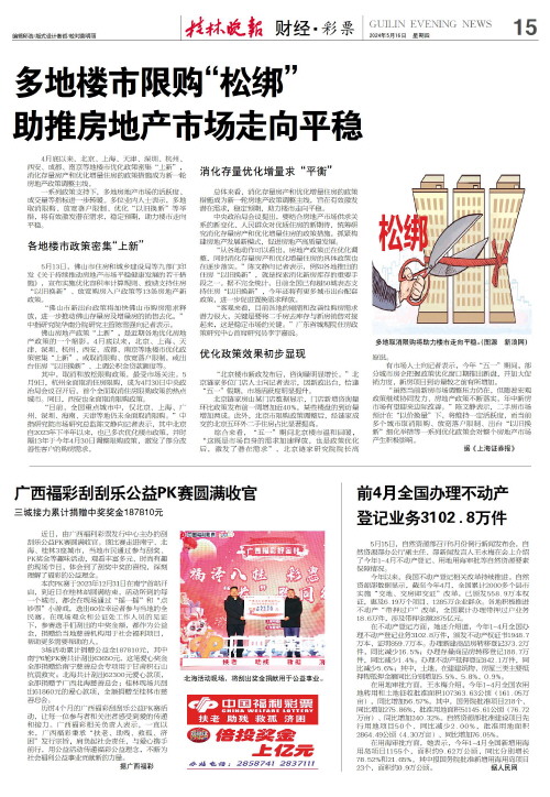 助推房地产市场走向平稳   4月底以来,北京、上海、天津、深圳、杭州、西安、成都、南京等地楼市优化政策密集“上新”,消化存量房产和优化增量住房的政策措施成为新一轮房地产政策调整主线。