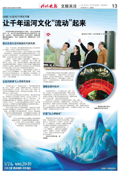 近日,江苏卫视二季度重磅打造的沉浸式文化探索节目《启航!大运河》在南京举办启动仪式。
