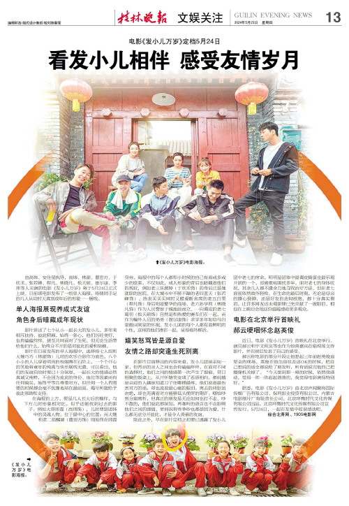 电影《发小儿万岁》定档5月24日 看发小儿相伴 感受友情岁月   由高炜、安佳星执导,高炜、林源、曹思方、于欣禾、张若峰、程凡、林晓凡、松天硕、崔尔康、李萍等人主演的电影《发小儿万岁》将于5月24日正式上映。日前该电影发布了一组单人海报,将情同手足的几人从幼时天真到成年后的形象一一展现。
