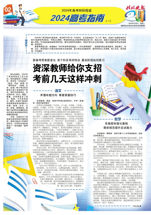 日前,记者采访了桂林多位教学经验丰富的老师,请他们结合今年高考的变化,分学科为考生梳理出了一份详细的“备考锦囊”。