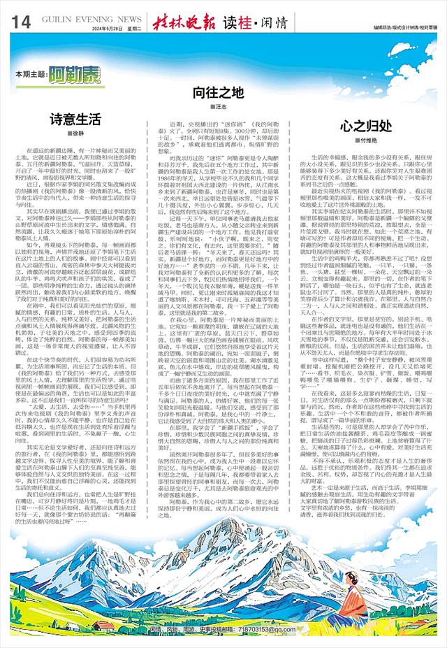 其实无论是文学爱好者,还是向往诗和远方的旅行者,在《我的阿勒泰》里,都能感悟到跨越文字边界、探寻人性至美的境界,能了解和喜爱生活在阿勒泰山脚下人们的至真至纯至善,能够体验自然与人文交织的独特美丽。在这一过程中,我们不仅能治愈自己浮躁的心灵,还能找到生活的寄托和意义。