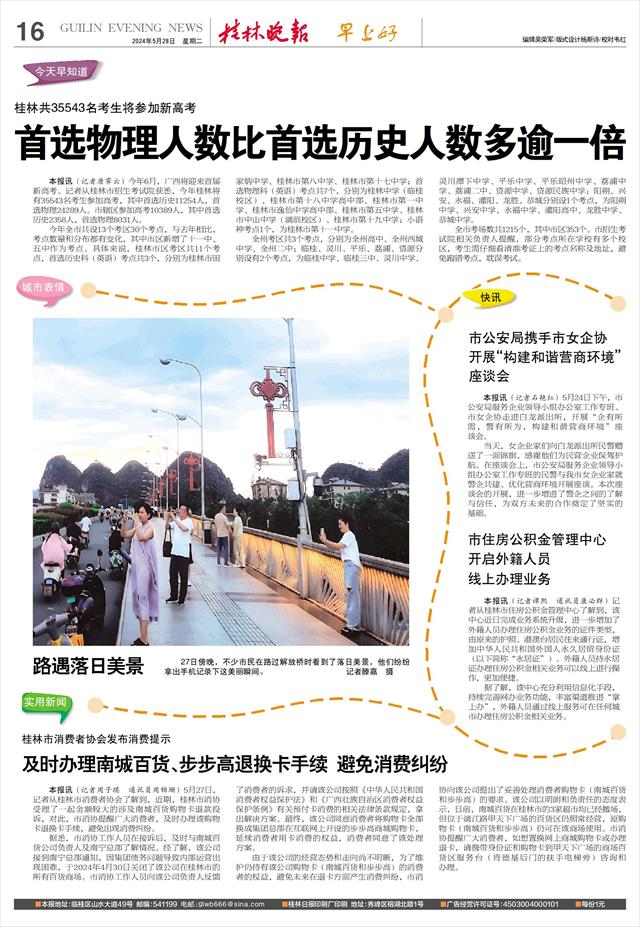 本报讯(记者唐霁云)今年6月,广西将迎来首届新高考。记者从桂林市招生考试院获悉,今年桂林将有35543名考生参加高考,其中首选历史11254人,首选物理24289人。市辖区参加高考10389人,其中首选历史2358人,首选物理8031人。