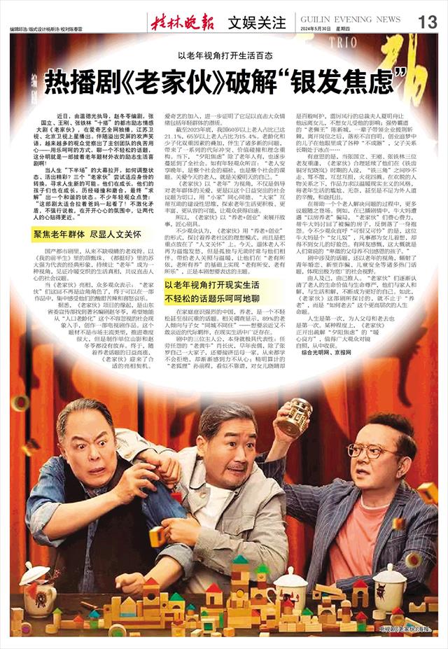 《老家伙》以“老年”为视角,不仅是倡导对老年群体的关爱,更是以这个日益突出的社会议题为切口,用“小家”同心同德、“大家”互帮互助的建设性思维,探索老年生活更积极、更丰富、更从容的可能,让观众获得启迪。