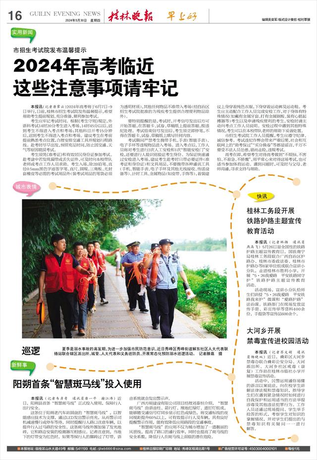 这些注意事项请牢记   本报讯(记者唐霁云)2024年高考将于6月7日-9日举行,日前,桂林市招生考试院发布温馨提示,希望帮助考生提前规划、充分准备,顺利参加考试。