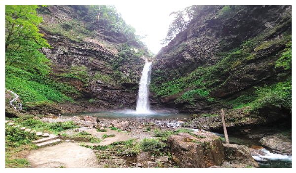 近日,记者驾车前往红滩管理站,一路上山路蜿蜒,群山连绵,满山翠绿间不时出现几处瑶族人家中飘出来的炊烟。到达红滩管理站后,沿着溪谷旁的山路徒步向下,沿途溪水清澈见底,空气清新,举目之处皆是青翠。走过谷底的一处拐角,磅礴壮观的红滩瀑布赫然出现在眼前。水流湍急,宛如一条白龙从两边悬崖的缺口处飞流而下,落入谷底。